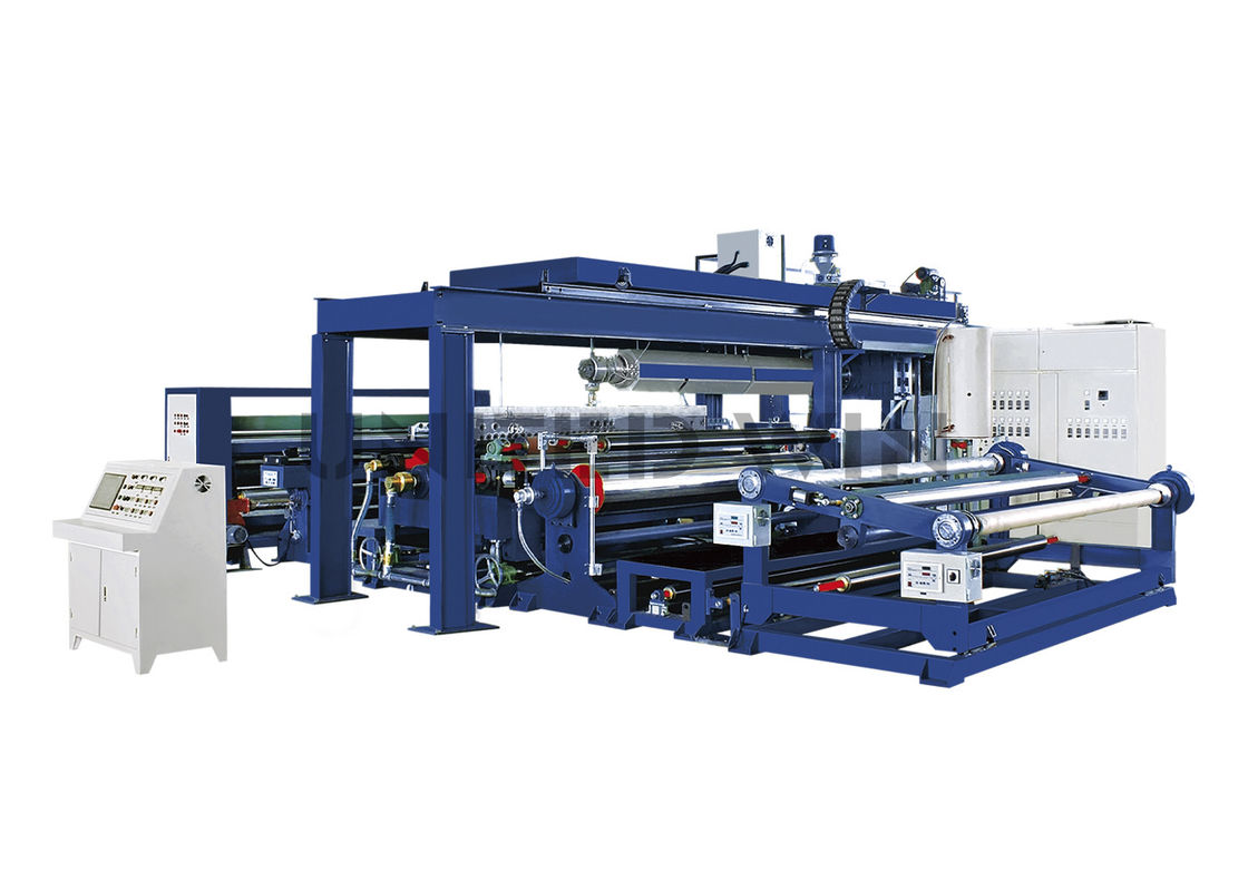 UW-M series plastic extrusion laminating line using polypropylene (PP) and low density polyethylene (LDPE) as raw material, after hot melt extrudering film from the barrel, evenly coating at all kinds of substrates such as: woven bag, kraft paper, cloth surface laminating, under the action of laminating device, the substrate bonding strengthof plastic film and substrates ≥ 3N, it can be single or double-sided laminating at one time.