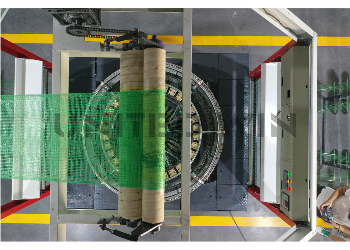 Mesh bag circular loom is mainly used to produce cylindrical mesh bags for packaging vegetables, fruits and other agricultural products. The suitable raw material is PE or PP. 100% recycled materials can be used also. Usually weft yarn is flat yarn(tape) and warp yarn can be monofilament or flat yarn.